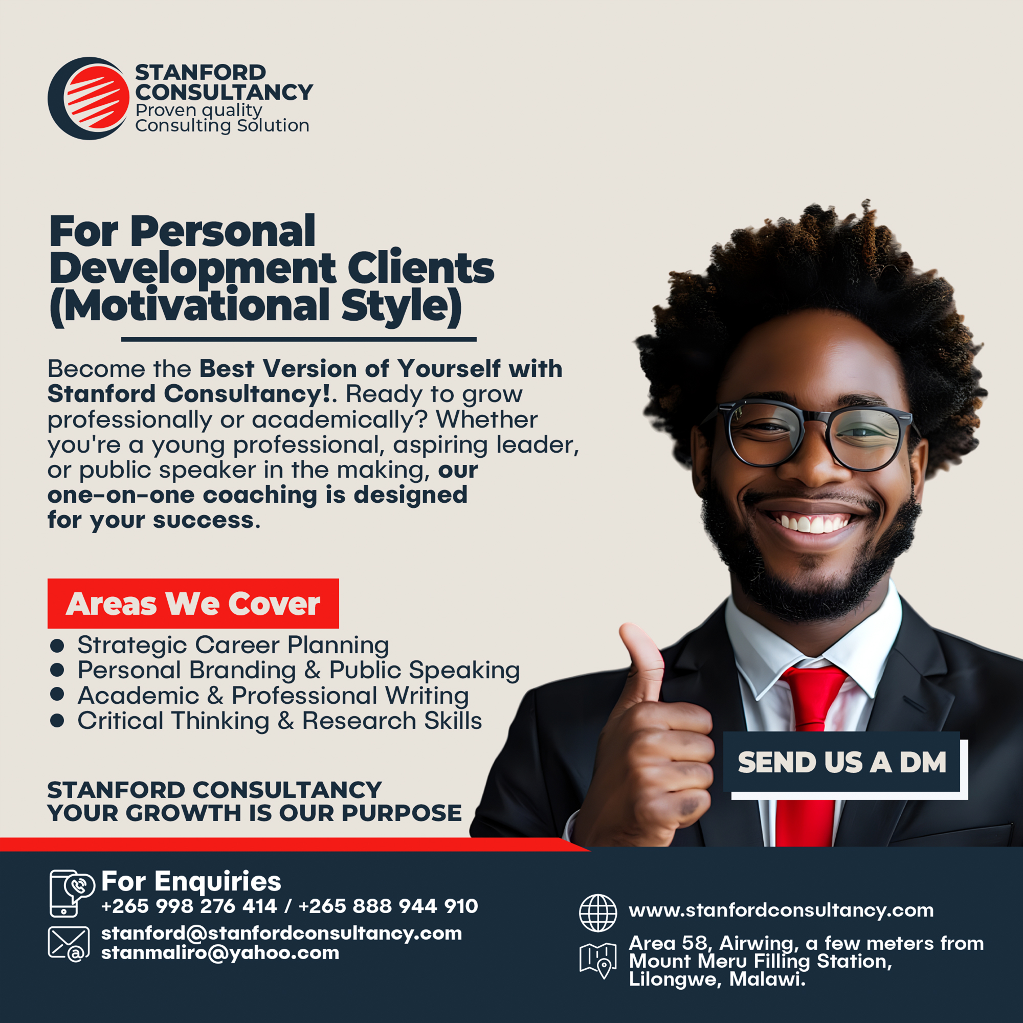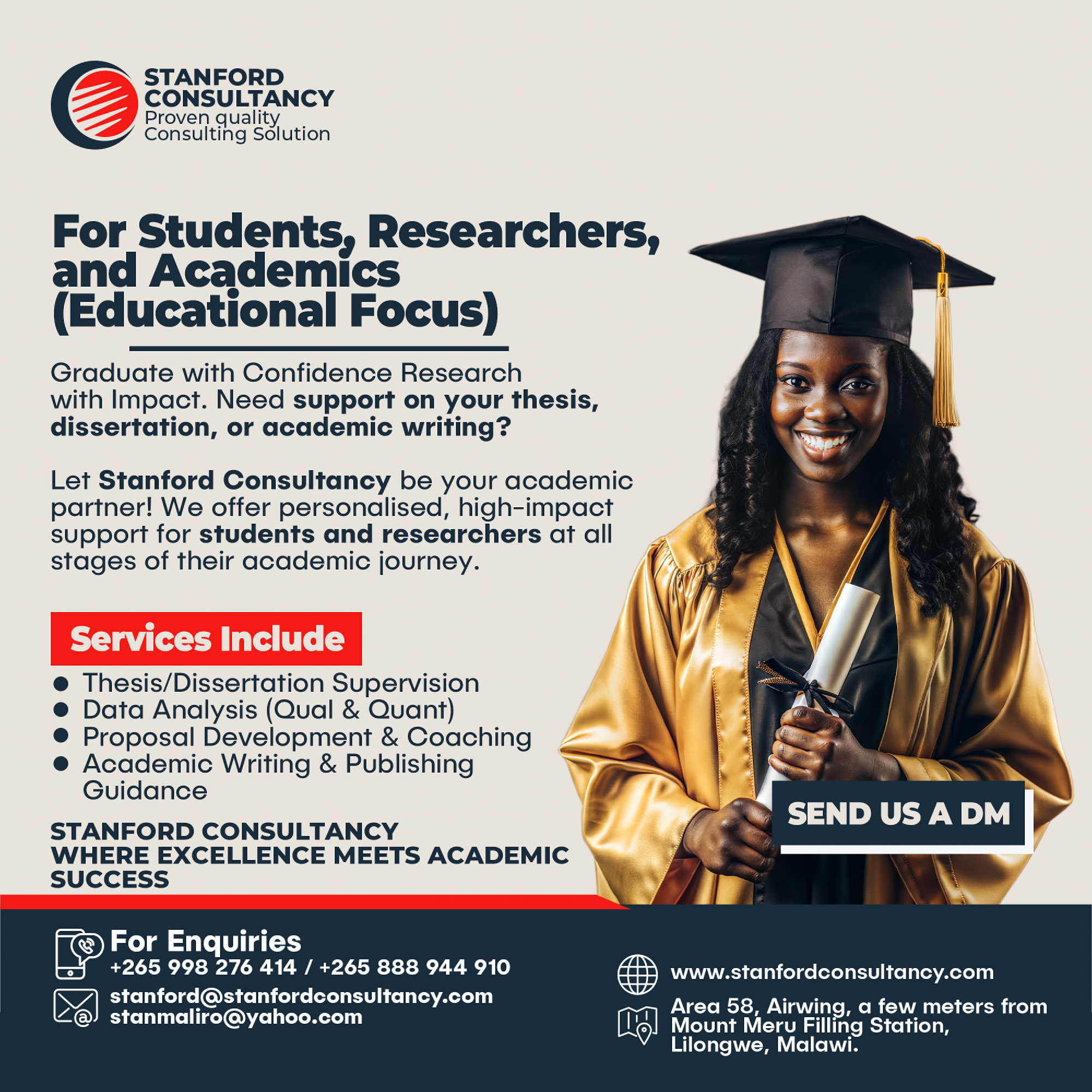 Stanford Consultancy is a professional firm dedicated to delivering innovative, evidence-based solutions for organisational and personal growth. We work with individuals, institutions, and development partners to build capacity, support research, and drive sustainable impact through tailored strategies and expert guidance.